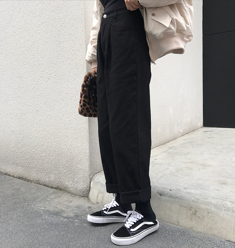 Yeknu Alien Kitty Loose High Waist Thin Women Pants Spring Autumn Femme Fashion Simple Casual Solid Pant Girls All-Match Fresh