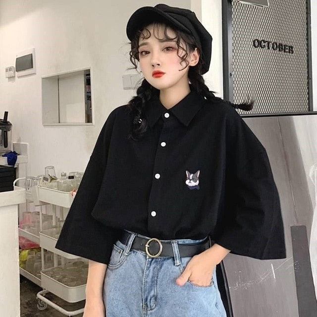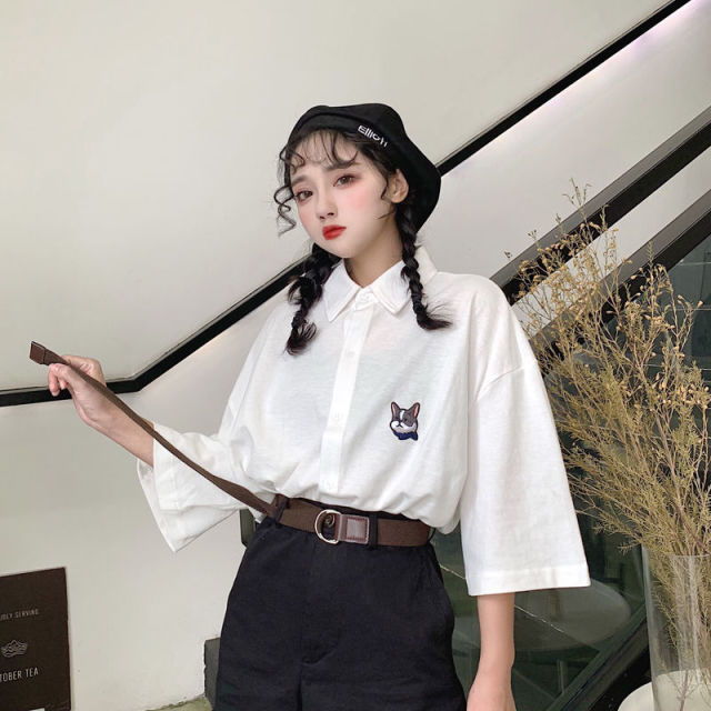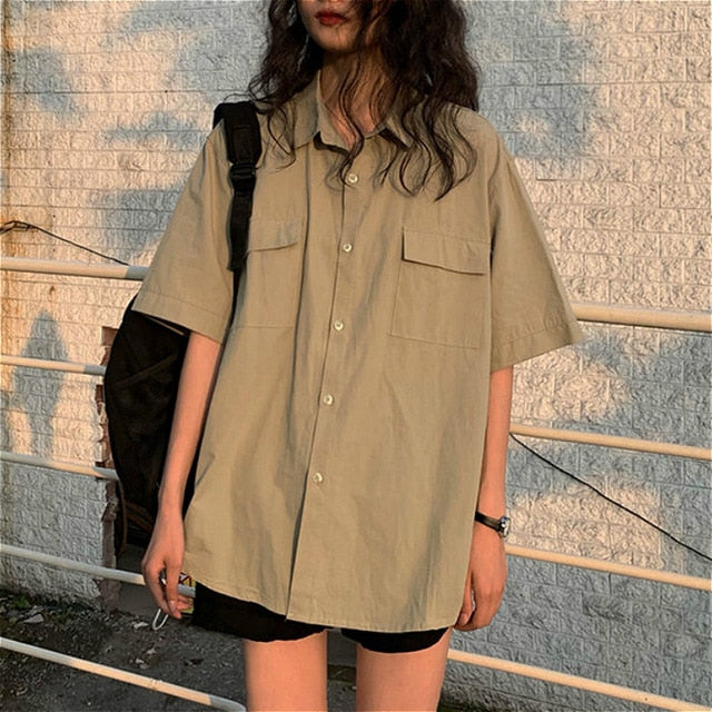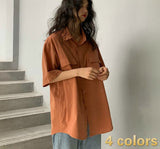 Yeknu Blouses Women Japan Style Harajuku Simple Short Sleeve Summer Womens Chic Tops Retro All-match Pockets Trendy Girls Shirts New