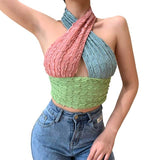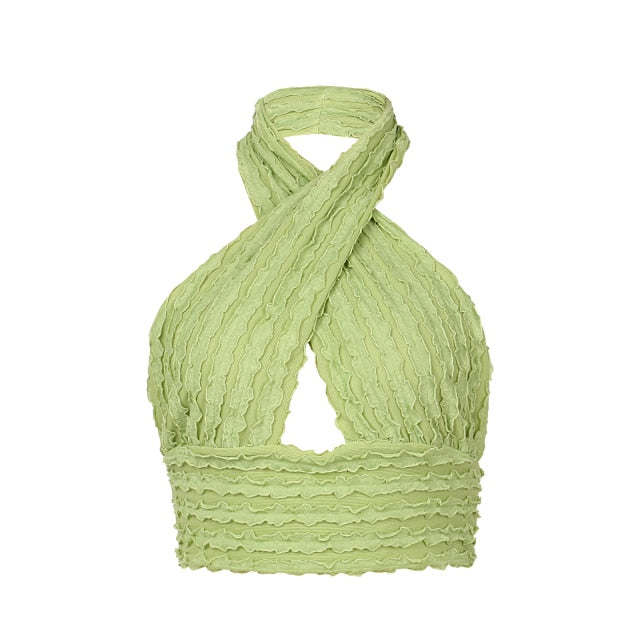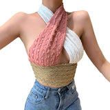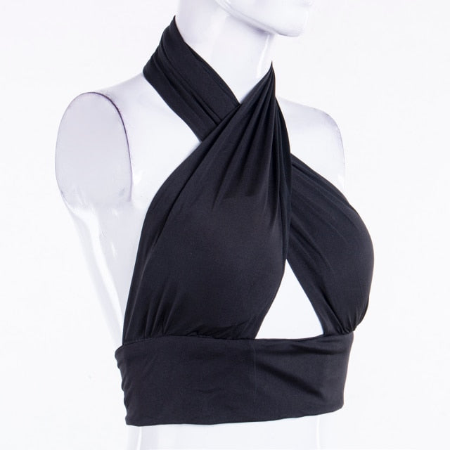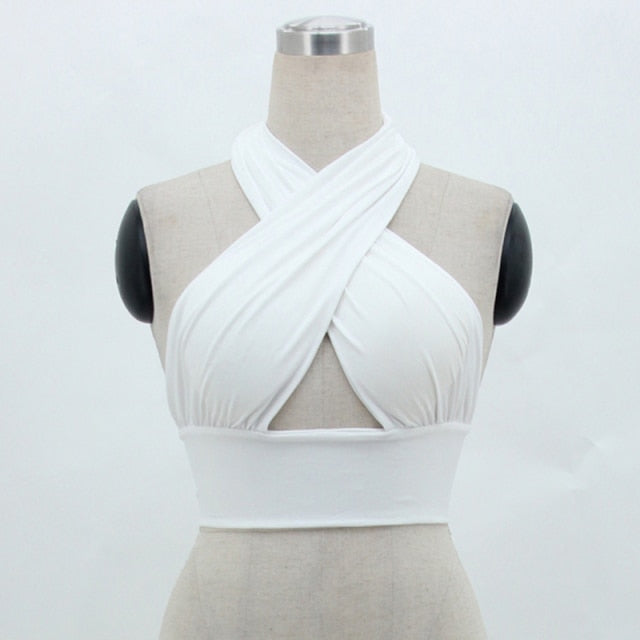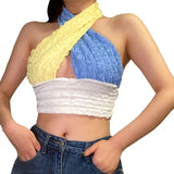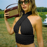 Yeknu Chic Fashion Cross Halter Sexy Crop Tops for Women Sleeveless Backless Streetwear Hollow Out Feminino Clothes