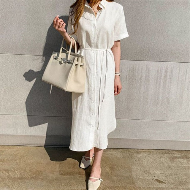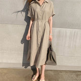Yeknu Colorfaith New Women Summer Shirt Dress Casual 3 Colors Loose Fashionable Split Lace Up Cotton and Linen Long Dress DR1670