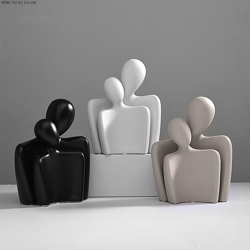 Beautiful and beloved couple figurine. They are hugging, which shows the deep love between the two lovers. Man protecting the girl in his arm, this romantic ceramic couple sculpture implies a great humanistic feeling, and it is deeply loved by people. When it is put on the table, which always sends out a harmonious atmosphere, reminding us to cherish our loved ones.