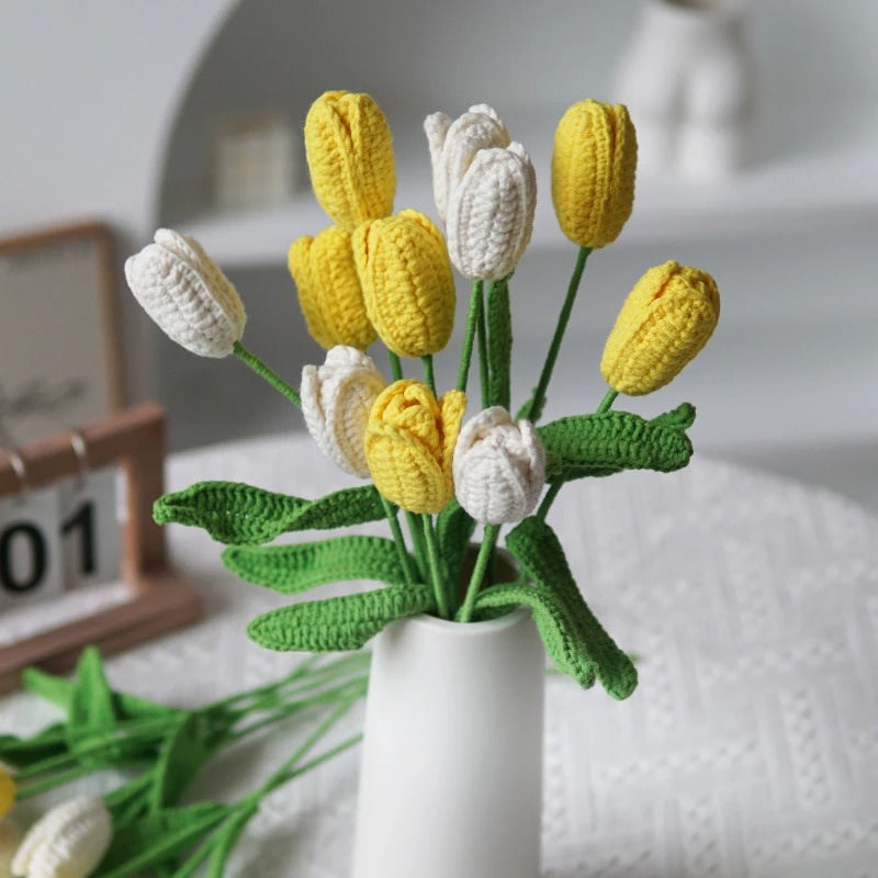 Cute handmade crochet tulip flowers. Compose beautiful bouquet of artificial flowers with these crochet tulips. Cute decor and must have for danish pastel, kawaii, soft girl and may other aesthetic rooms.