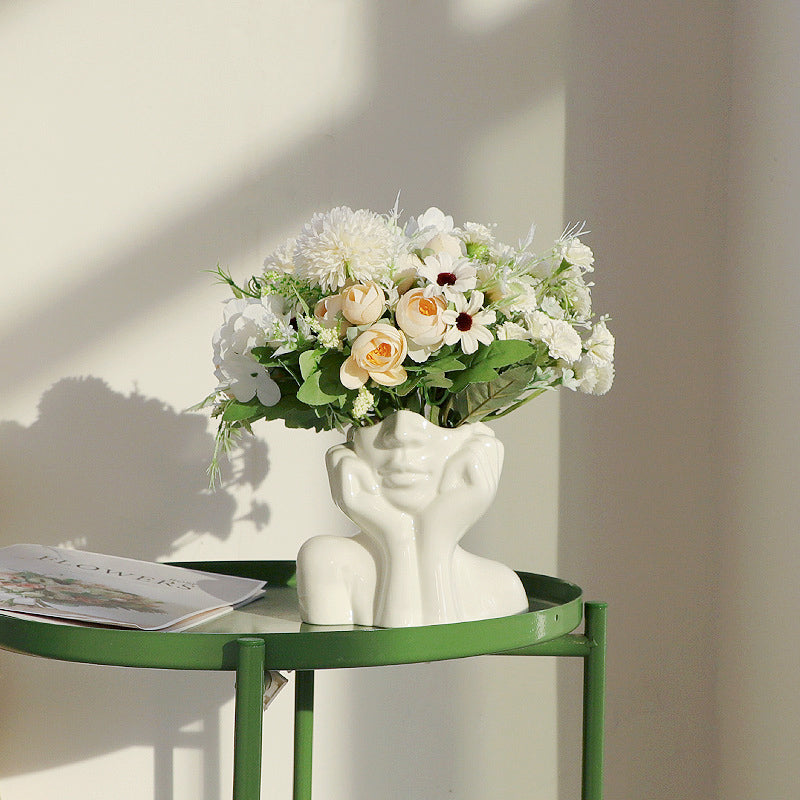 Yeknu Elegance White Girl Figurine Ceramic Vase
