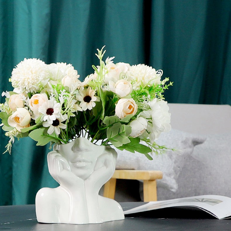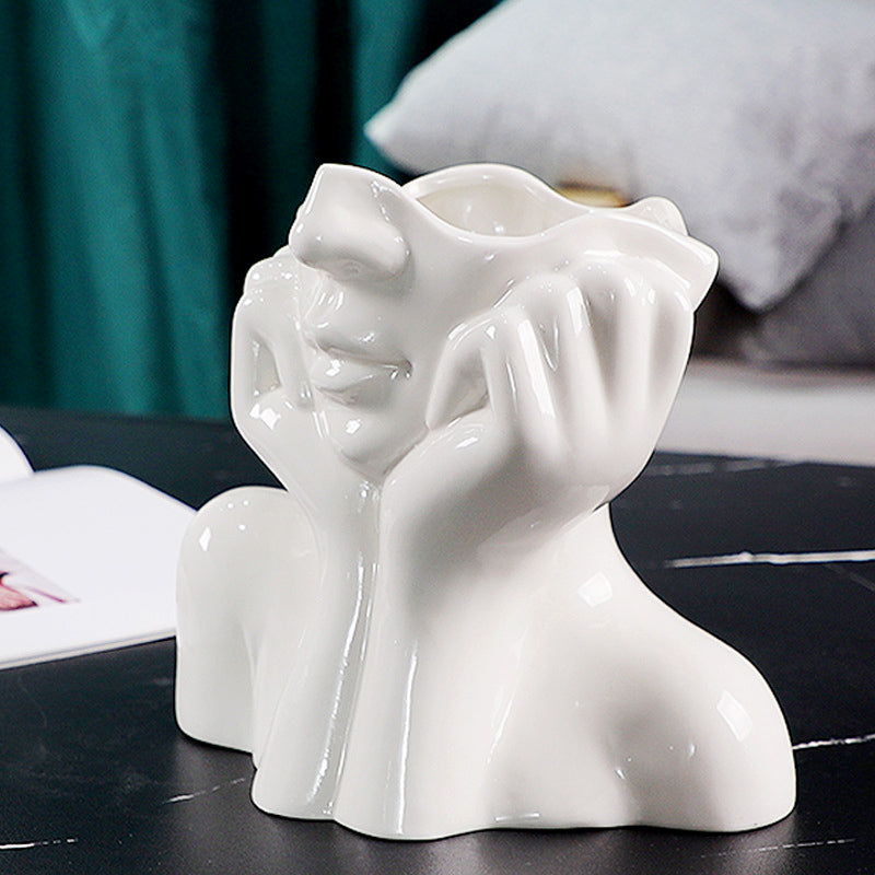 These vases are all at once artistic and elegant and showcase women's body expression art. A great way to adorn your empty shelves and is sure to be a charming addition to your home. The faces are detailed and serene. Simply put in some of your favorite fresh flowers or just leave it empty to be a beautiful figurine sculpture.