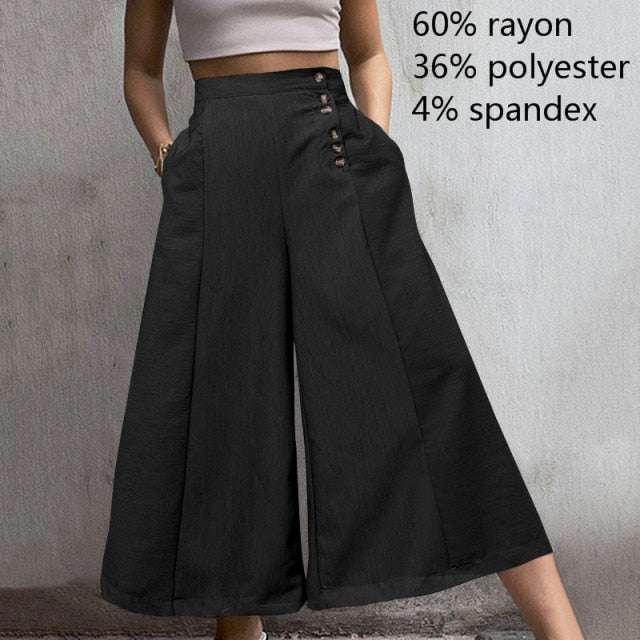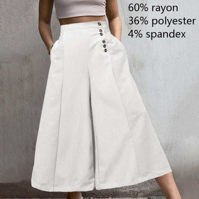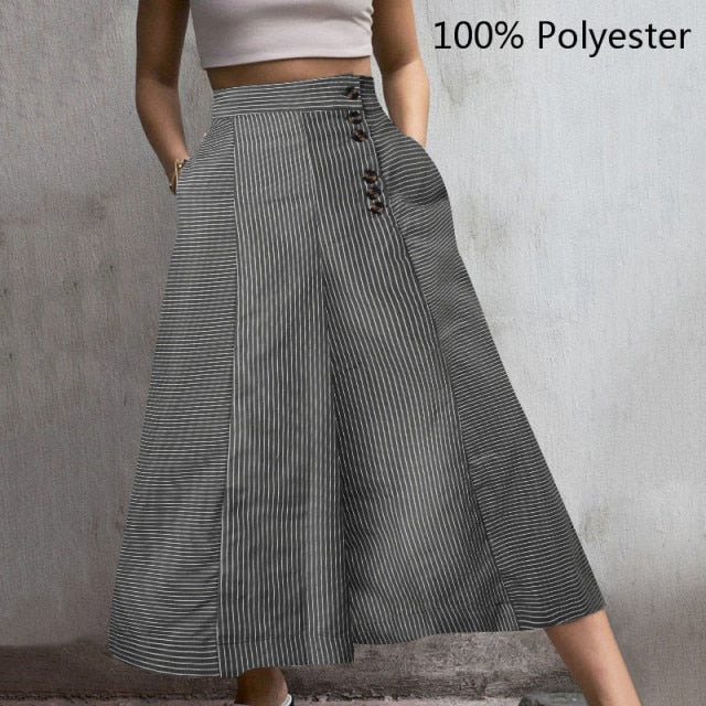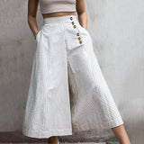 Yeknu Fashion High Waist Striped Pants Women Retro Work Trousers Autumn Casual Buttons Loose Elegant Party Wide Leg Pants