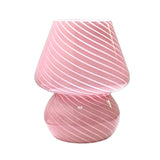 Glass lamp with a unique spiral stripe design, offering a modern and stylish touch to your room. Its mushroom-shaped silhouette provides soft, ambient lighting, making it perfect for bedside tables or as bedroom decor. Add this lamp to elevate your interior with a pop of color and a playful yet sophisticated vibe. Perfect for danish pastel, preppy, soft/vanilla girl rooms.