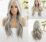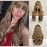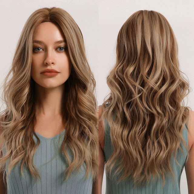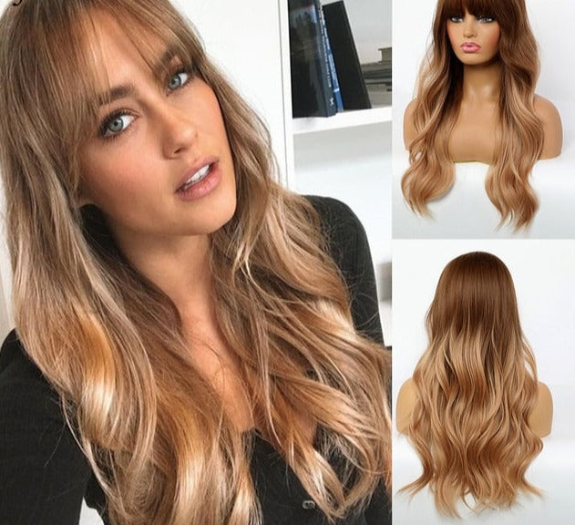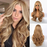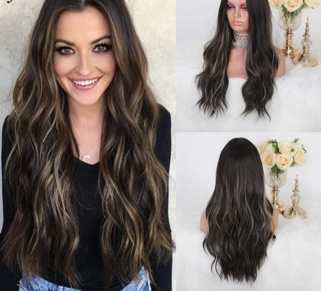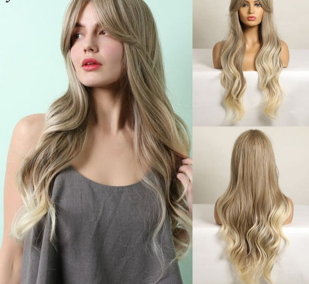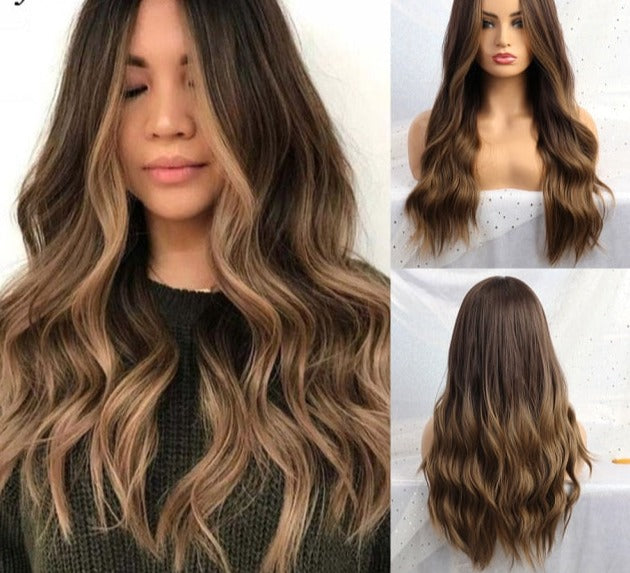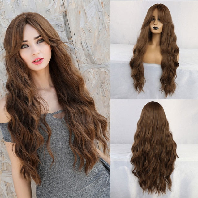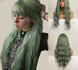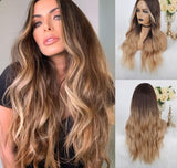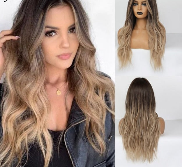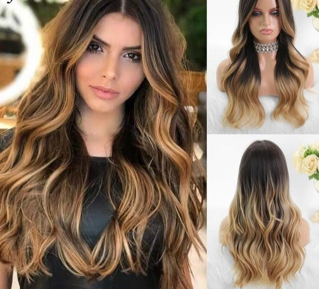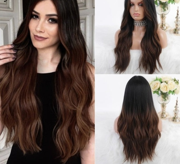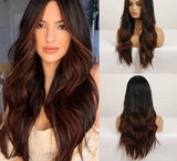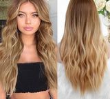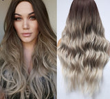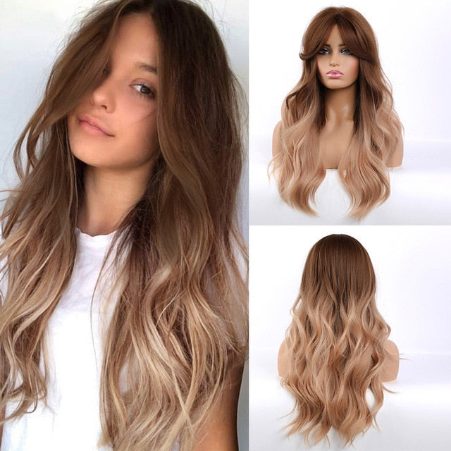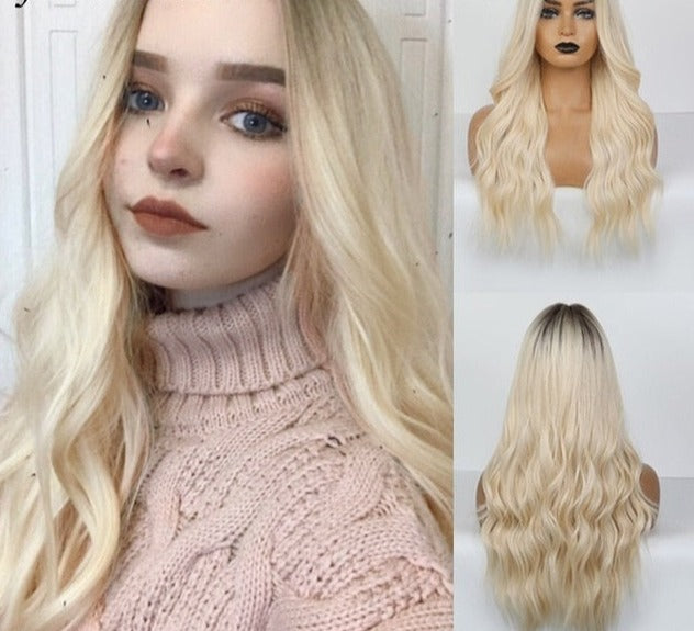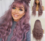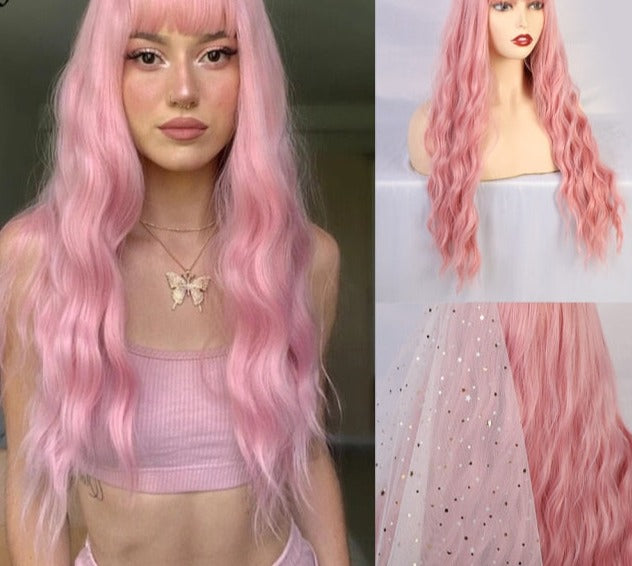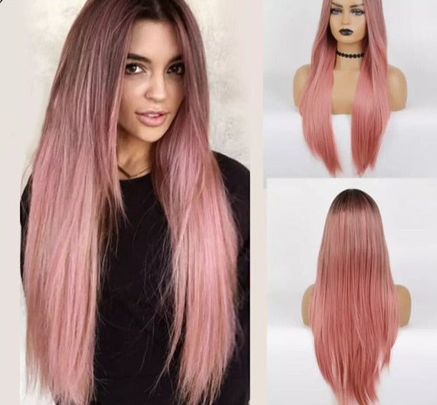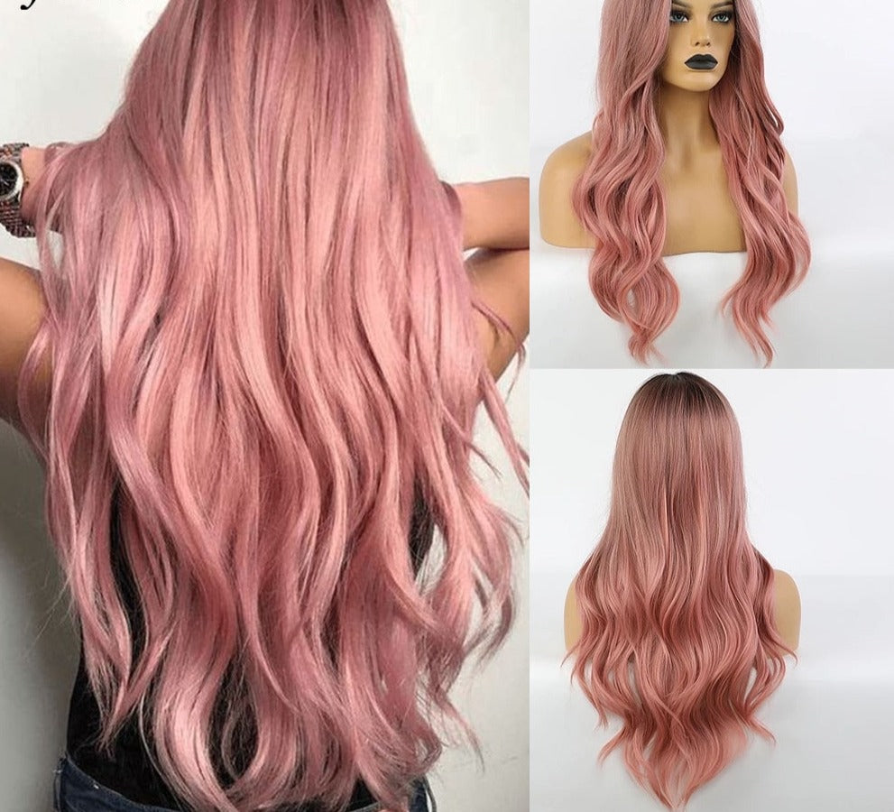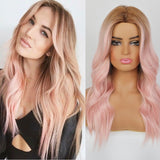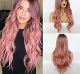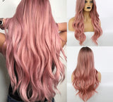 Yeknu Synthetic Long Wavy Dark Root Ombre Pink Cosplay Wigs for Black White Women Colorful Fiber Hair Wigs High Temperature
