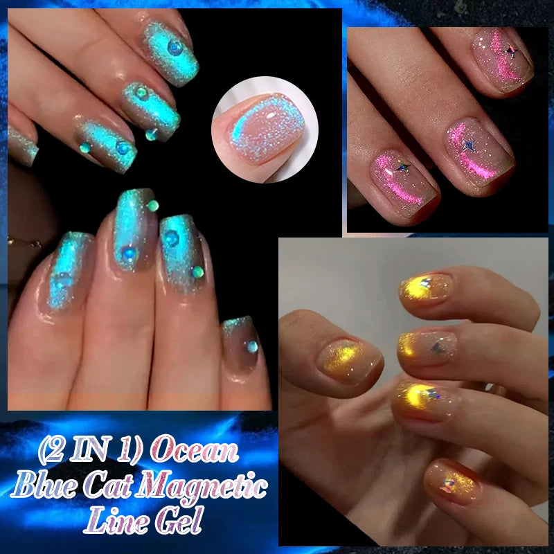 Yeknu 5ML Aurora Ocean Blue Liner Gel Polish Nail Art Sparkling Painting Cat Magnetic Gel Semi Permanent UV Gel French Nails