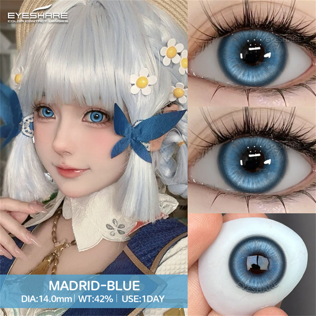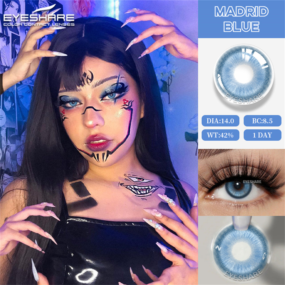 Yeknu Madrid Blue 1 Day Use I 14.0mm,10 Pcs=5Pair,Cosplay