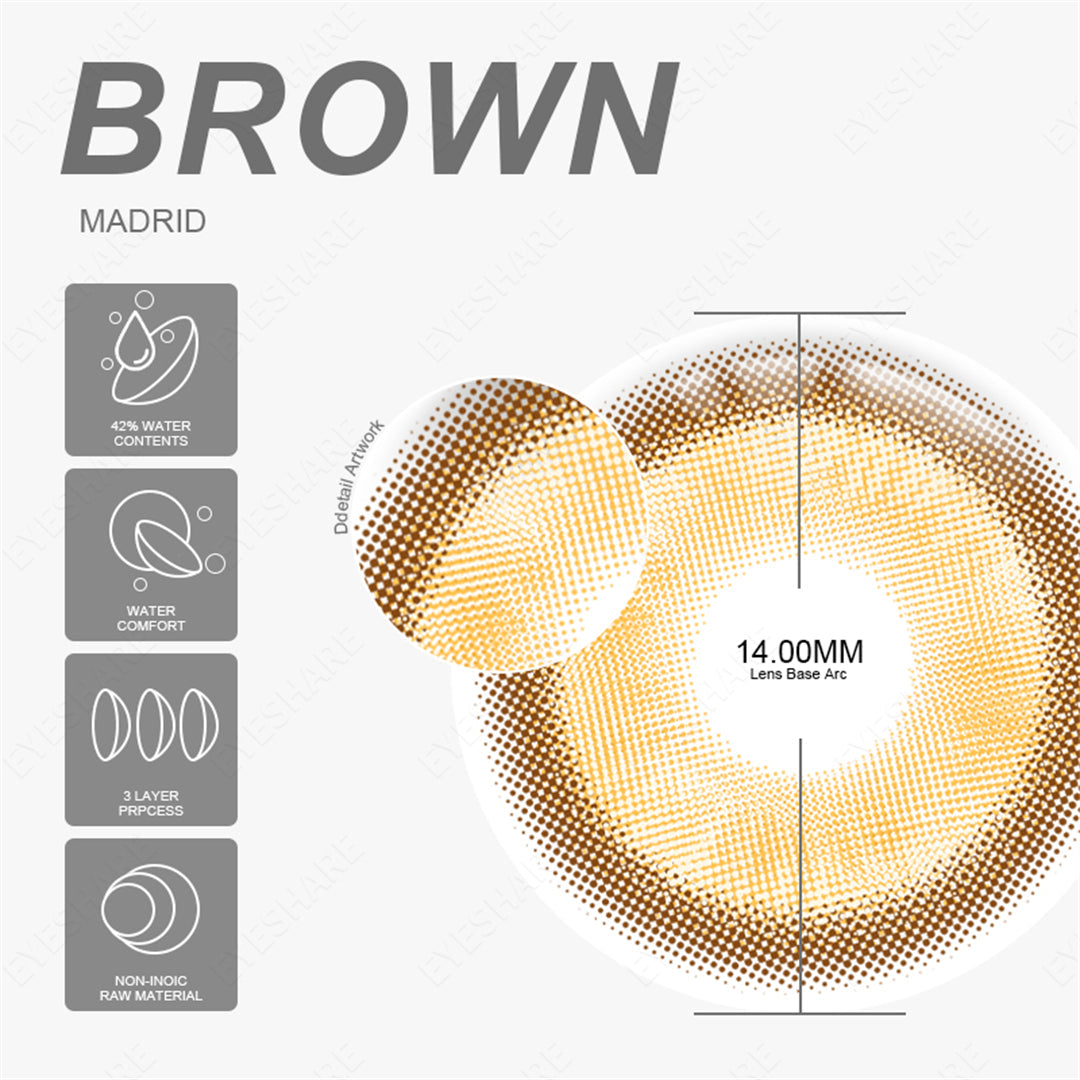 Yeknu Madrid Brown 1 Day Use I 14.0mm,10 Pcs=5Pair,Cosplay