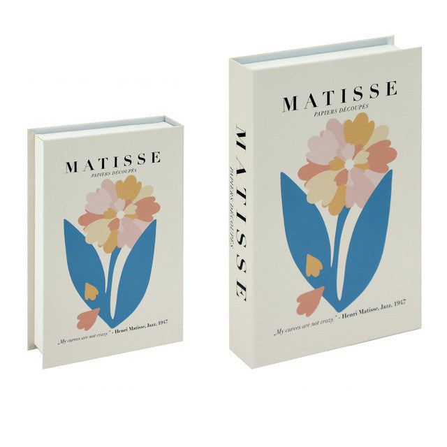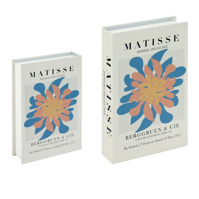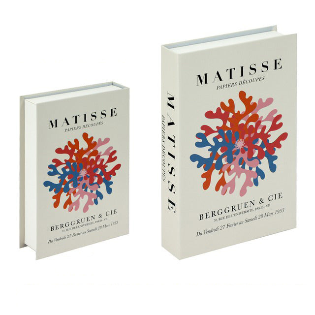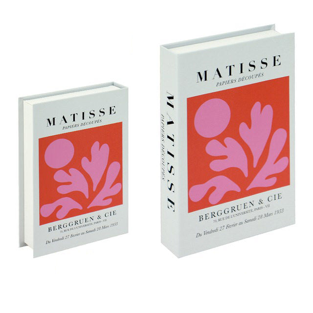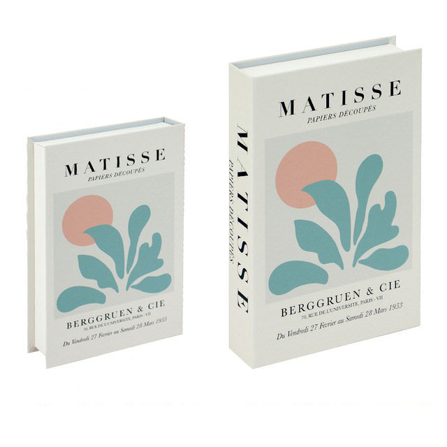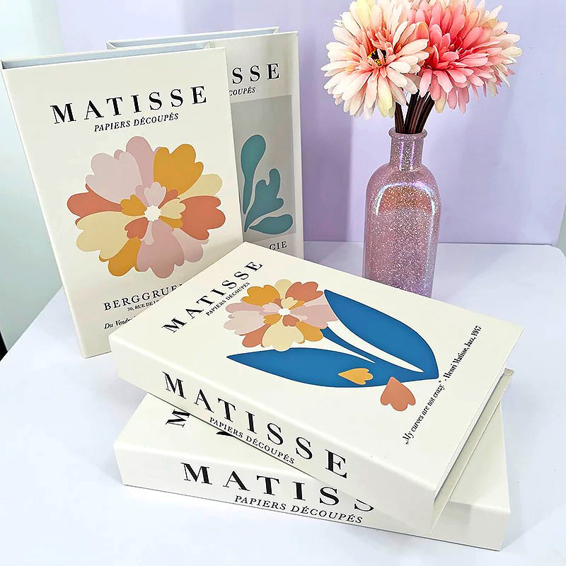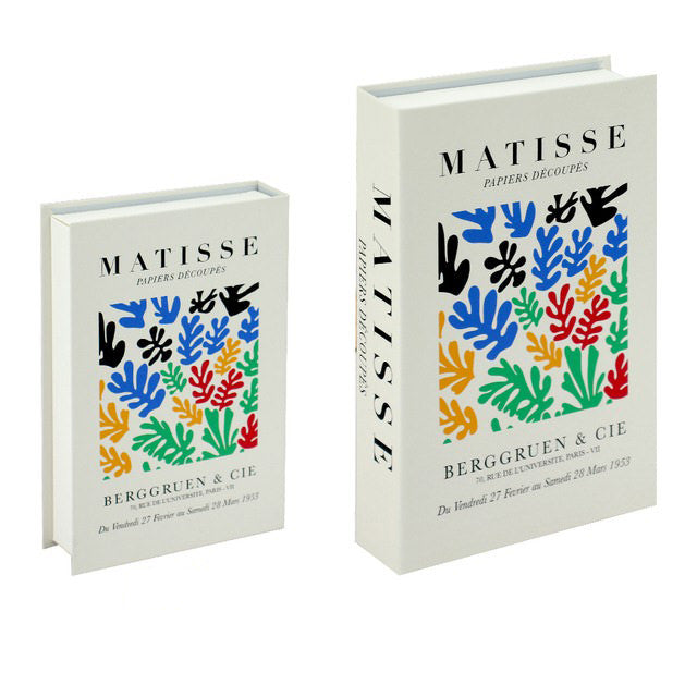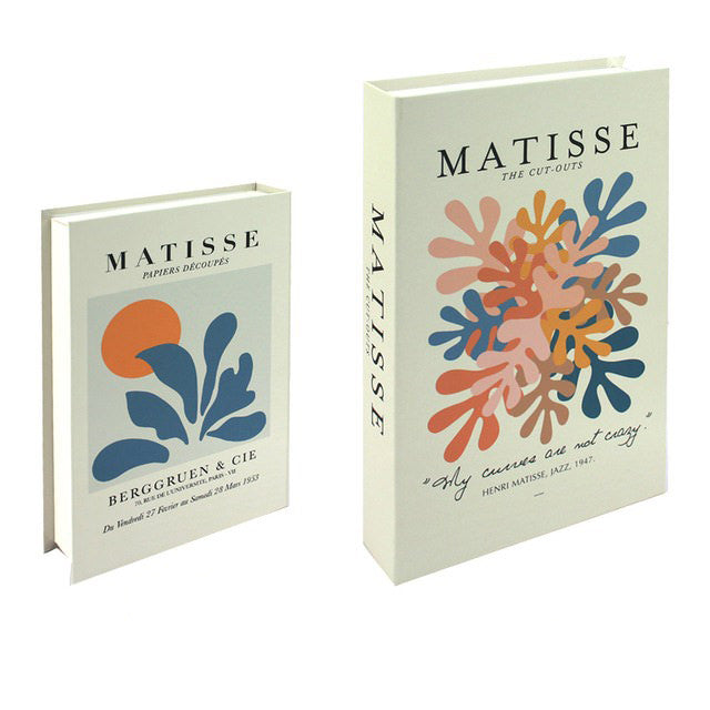 Use these cute matisse cut out printed fake books to organize your shelf spaces and to store some rarely used stuff. The books on the photos displayed both back and front sides.