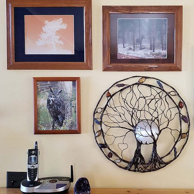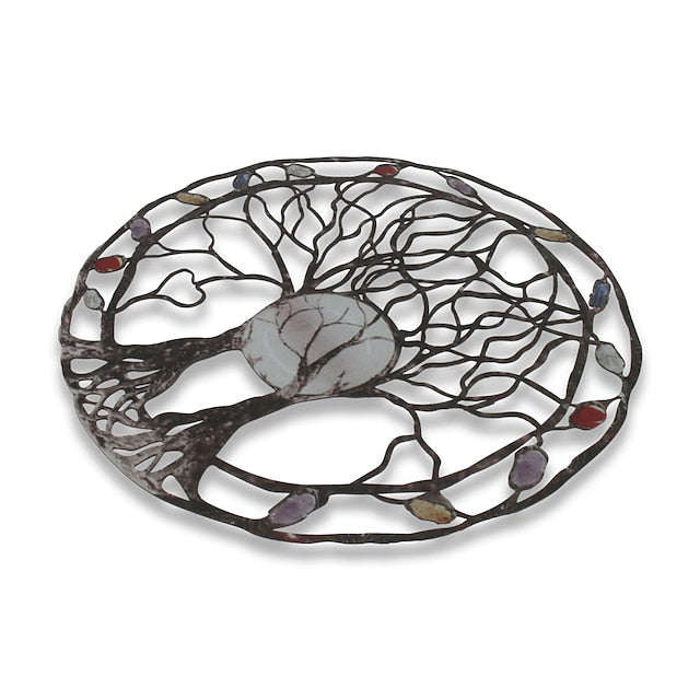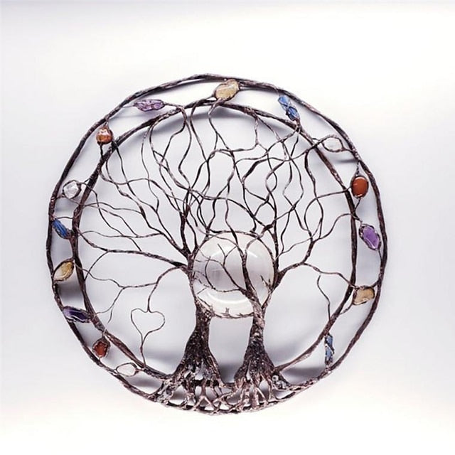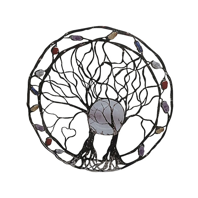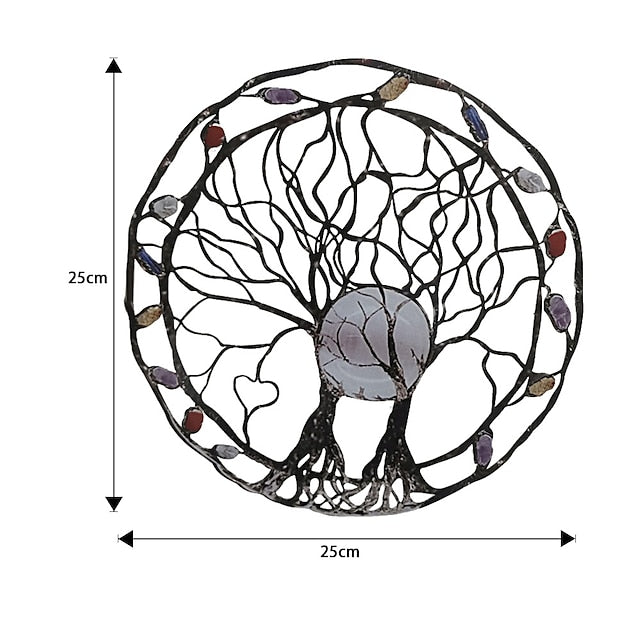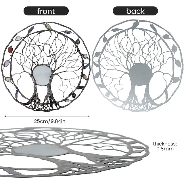 Description:Material: MetalSize: 25*25cm/ 9.8*9.8inch.Features:1. Circle Of Life metal Tree sculpture, The Moon Huggers, wall or window art with dreamy Selenite Full Moon and a blend of minerals.2. A dreamy joyous piece, capturing the moment of the inner childlike spirit of awe as the full Moon rises and peeks into the heart.3. Colorful artwork depicting the two spirit trees hugging the Moon. A very unique artistic home decor for those special occasions,including Wedding and Anniversary gift ideas.4. Made of high quality metal, durable and long lasting, not easy to fade and rust.5. Ideal Gift: Pefect housewarming gift for your family or friends.