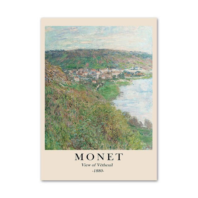Fascinating landscapes of Claude Monet decorated in the form of canvas wall art poster-cards. Perfect for decorating your art hoe room sacred space.