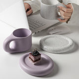 Enjoying a cup of coffee or tea with this plump mug featuring a thick rounded handle design will bring charm to your day. Comes with different vibrant colors to remind you to have a drink while you working busily. Thick cup plate that allows you to put your cup or can be used as a dessert plate as well.