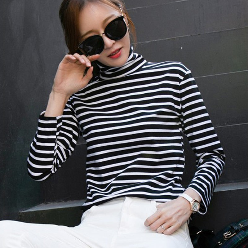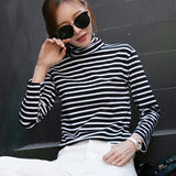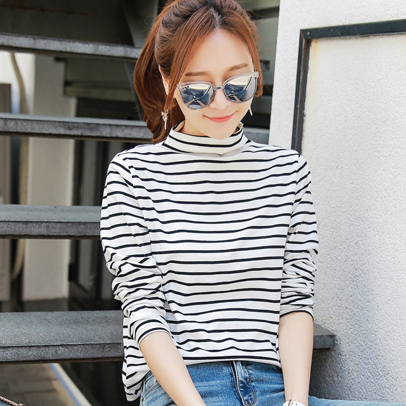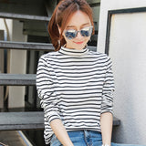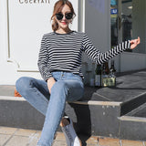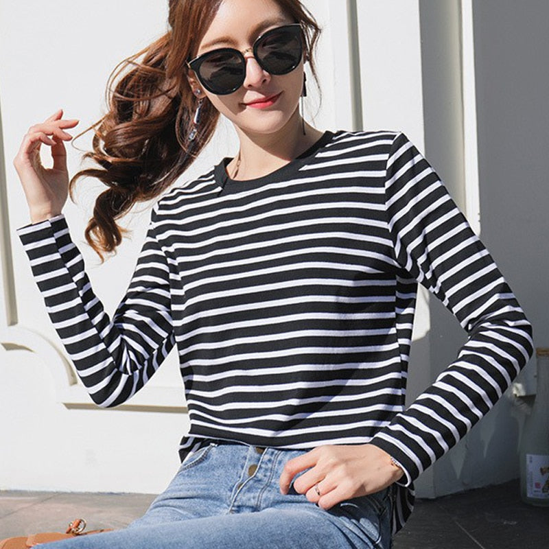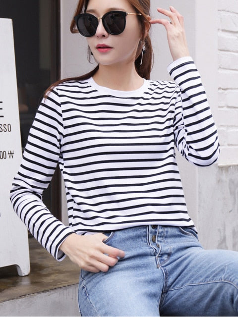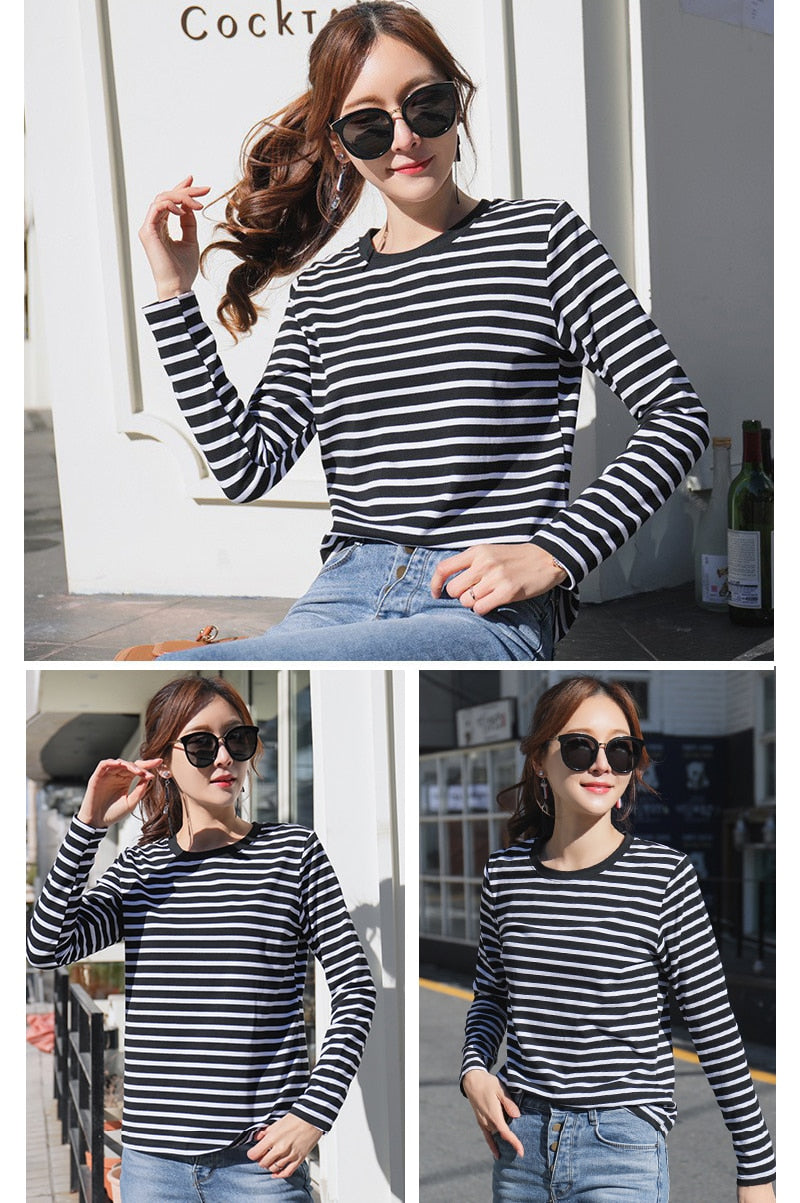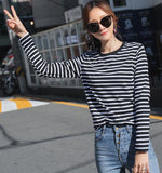 Yeknu Women's Spring Long Sleeve T Shirt O-Neck Striped 95% Cotton Tops Casual T-Shirts Women Tees Blusa