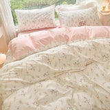 Yeknu Pale Pink Floral Print Bedding Set