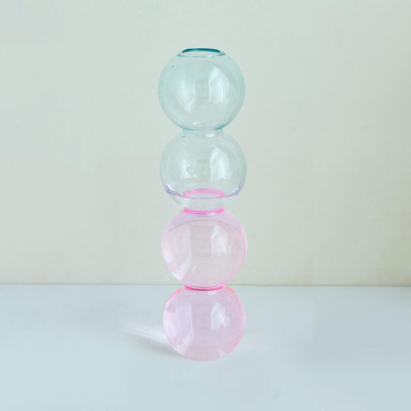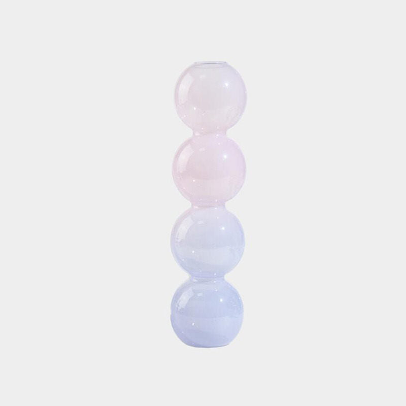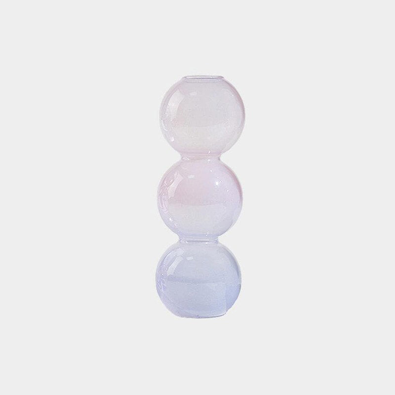 Soft pastel pink and pale purple tones design bubble vase to make your danish pastel desk outstanding. Available in two sizes: tall (4 bubbles) and short (3 bubbles). This ball wase can be used with artificial flowers, dries and decor or filled with water for fresh flowers. Hand-blown glass process: precised and smooth shapes.
