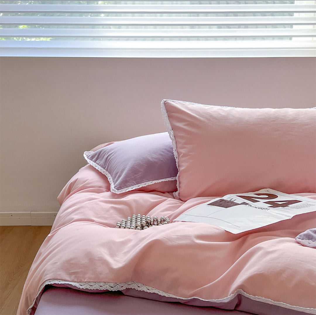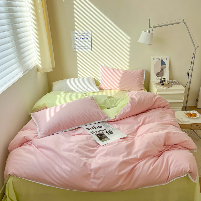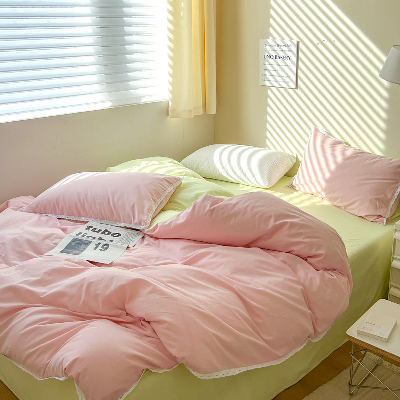Yeknu Pastel Lace Edge Bedding Set