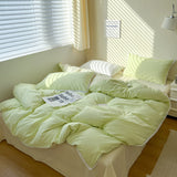 Whether you're looking to give your bedroom a fresh, romantic vibe or searching for the perfect gift, this bedding set is just what you need. Imagine yourself enveloped in luxury as the gentle hues and elegant lace work their magic, bringing comfort and style to your sanctuary. Treat yourself to this dreamy bedding collection and see how it can elevate your bedroom decor.