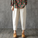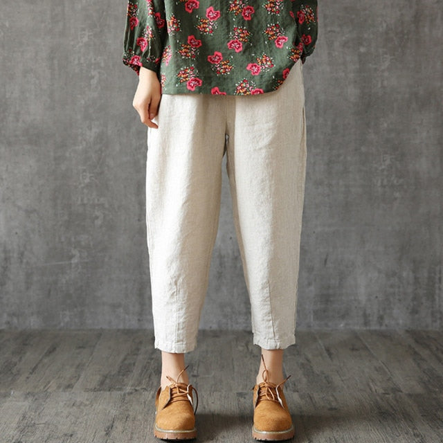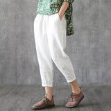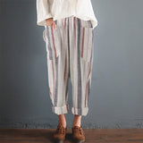Yeknu Plus Size Cotton Linen Trousers Women Summer Loose Harem High Waist Stripe Pocket Pant Casual Pantalon Female Sweatpants Trouser