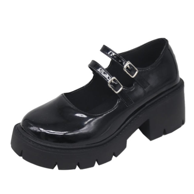 Yeknu New Black High Heels Shoes Women Pumps Fashion Patent Leather Platform Shoes Woman Round Toe Mary Jane Shoes Mujer