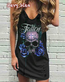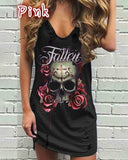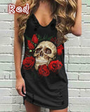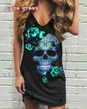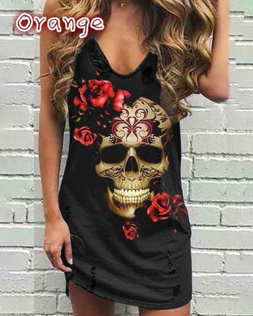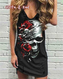 Yeknu Skull Print Women Sleeveless Shirt Dress Summer Gothic Style Ladies Casual V Neck Loose Short Mini Dresses Tank