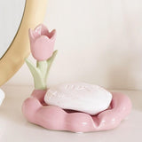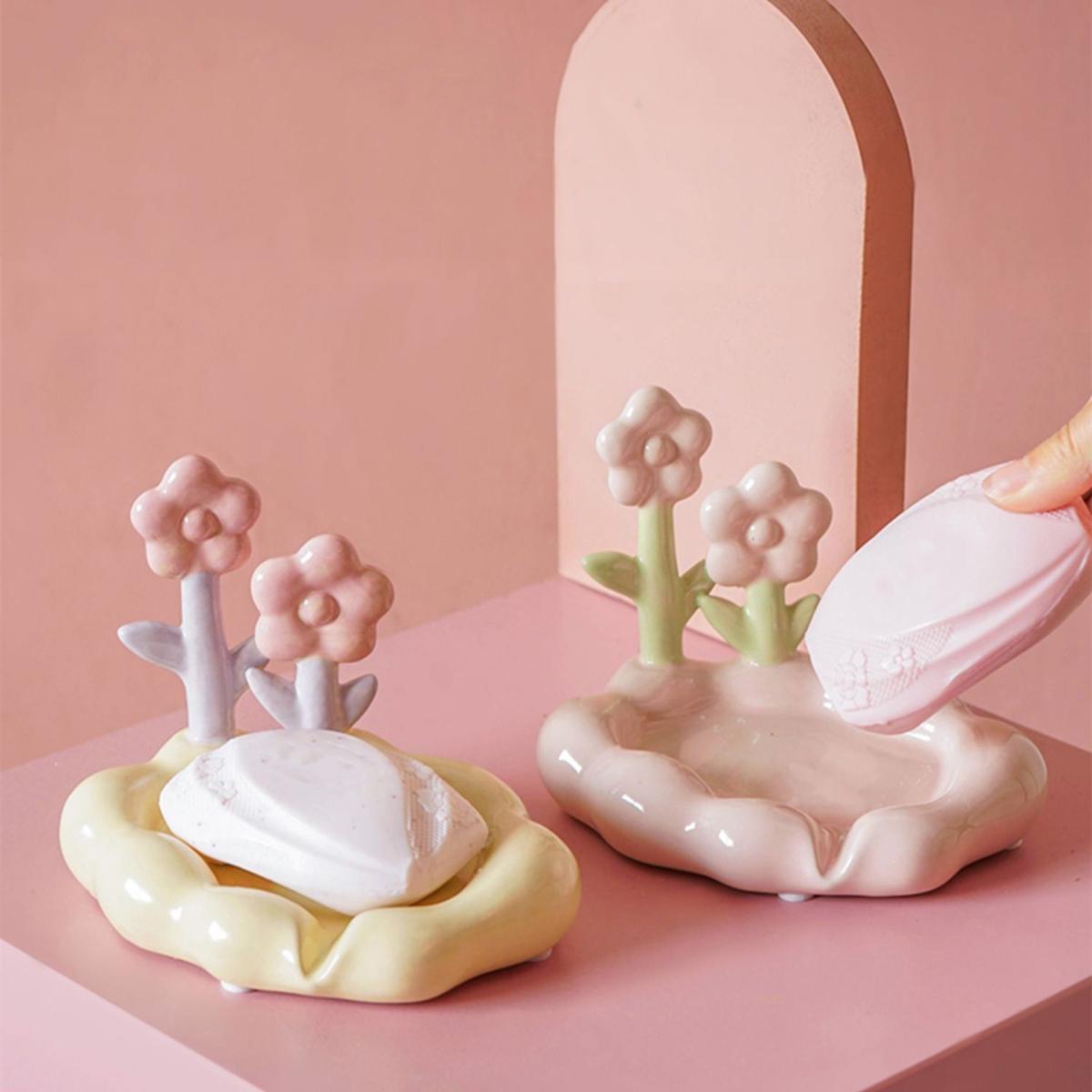 Yeknu Spring Floral Soap Dish Bathroom Decor