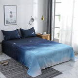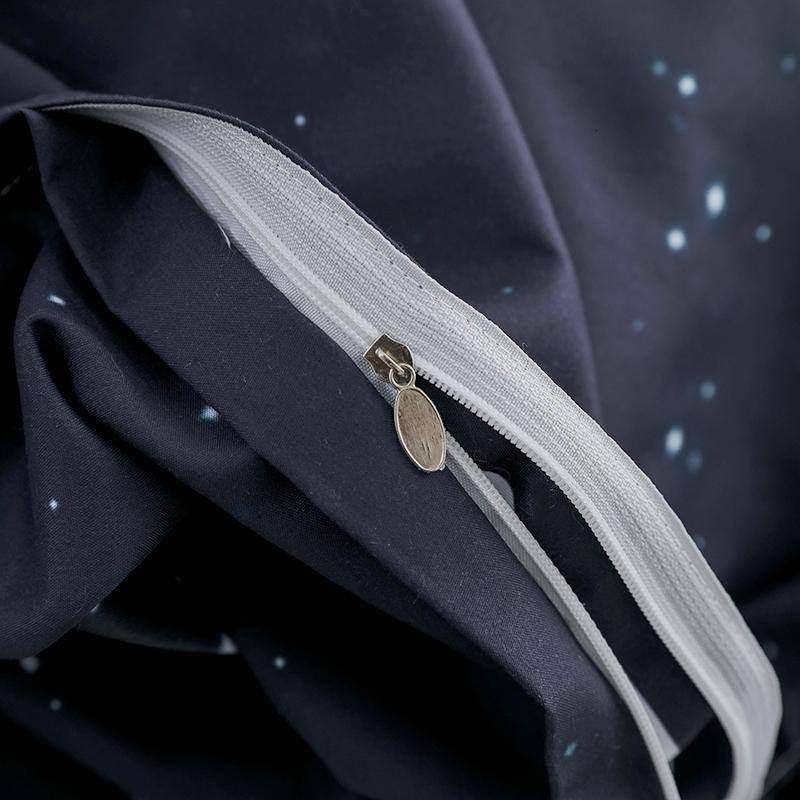 Duvet cover set with deep blue night sky gradient and shining new moon print. This aesthetic bedding set will spice up your dreamy/galaxy room.