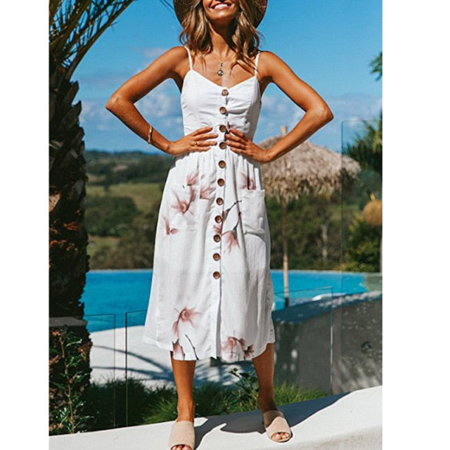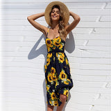 Yeknu Summer New Women's Dresses, Long Floral Print, Bohemian Dresses, V-neck Button Sleeves, Beachwear, Casual Wear, Plus Size