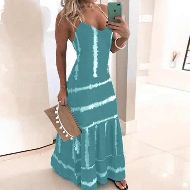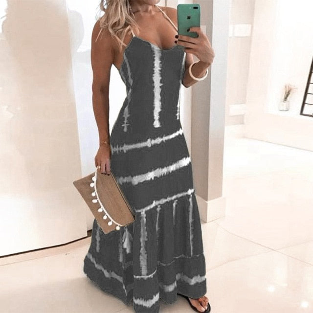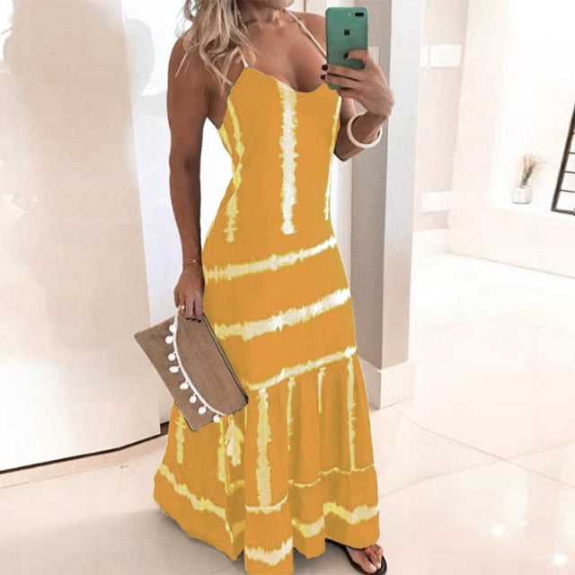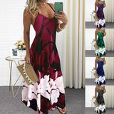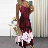 Yeknu Summer Casual Women Maxi Dress Sexy Robe Floral Printed Long Dress Sleeveless V-neck Streetwear Women Dress Loose Vestidos