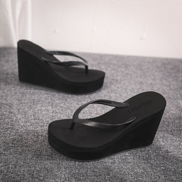 Yeknu Summer Women EVA Thick High Heel Wedges Slippers Fashion Female Beach Flops Sandalias Platform Causal Solid Claquette Femme