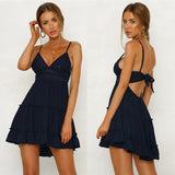 Yeknu Summer Women White Lace Halter Dress Sexy Backless Beach Dresses Fashion Sleeveless Spaghetti Strap Casual Mini Sundress
