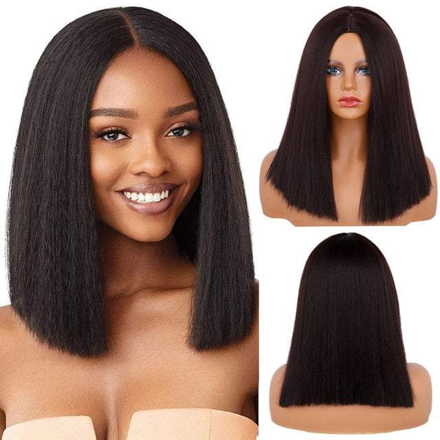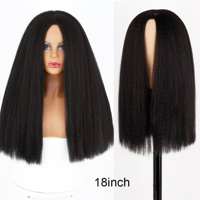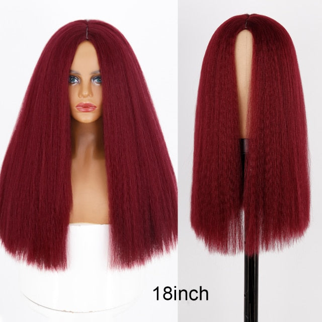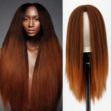 Yeknu Synthetic Wigs Yaki Straight Hair Wig For Women Yaki Straight 30 inch Long Afro Hair Wig Heat Resistant Fiber African Wig