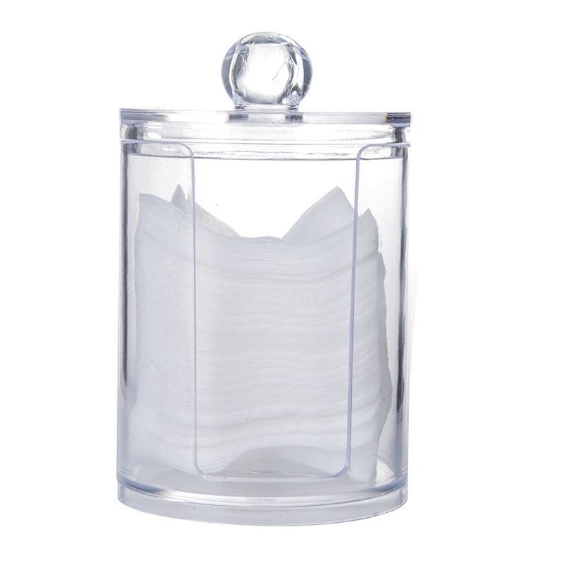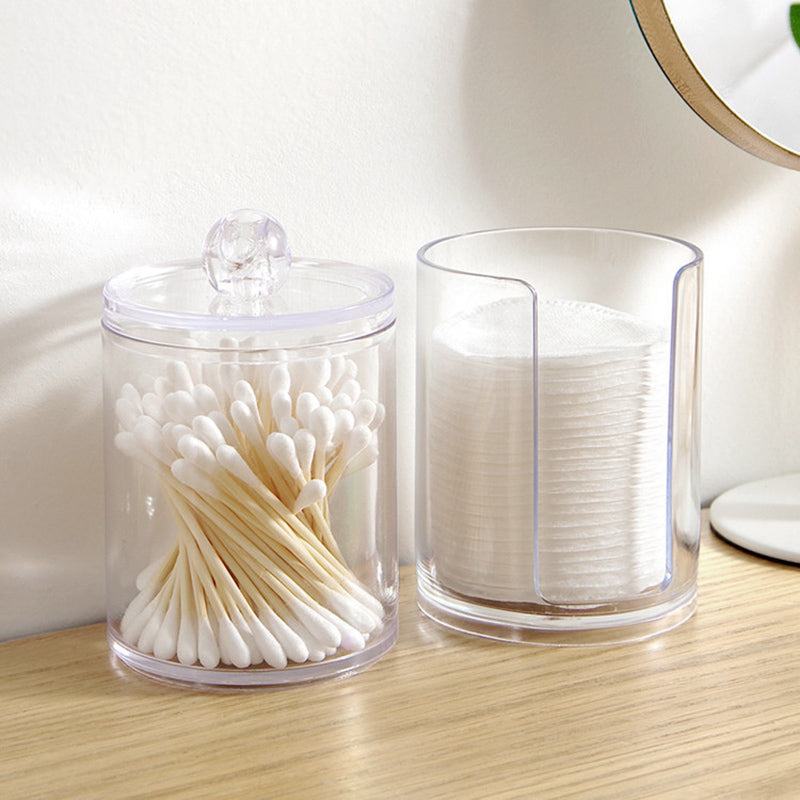 Simple Yet Functional - This cotton swab jar is made of hard solid plastic, that looks just like glass. Lightweight, won't hurt your kids, and more difficult to break from a small fall. Small in size but can hold many things, such as cotton swabs, cotton, hairpins, and little things. Doesn't take up too much space and it keeps things organized on your vanity. Comes with a lid that fits tightly to keep from dust.