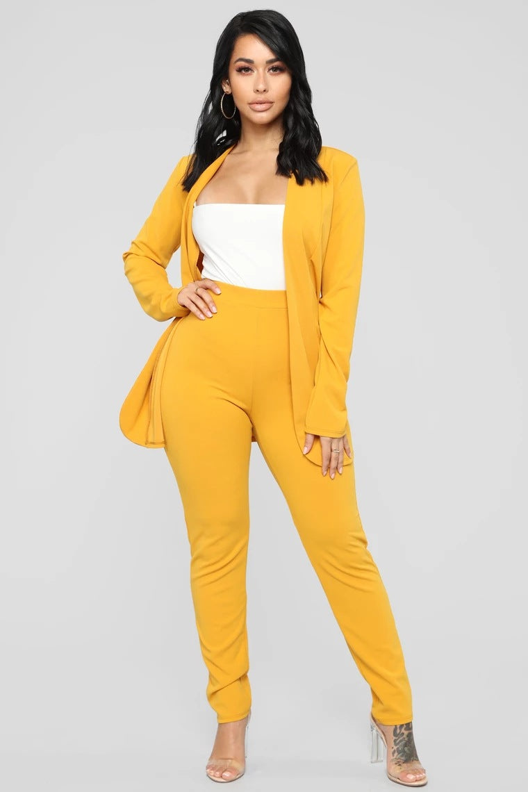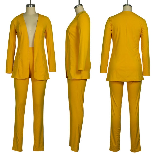 Yeknu Two Piece Women Business Blazer Set Office Lady Solid Colors Formal Suits with Buttons New Pink Yellow Commute Blazer Pants Set