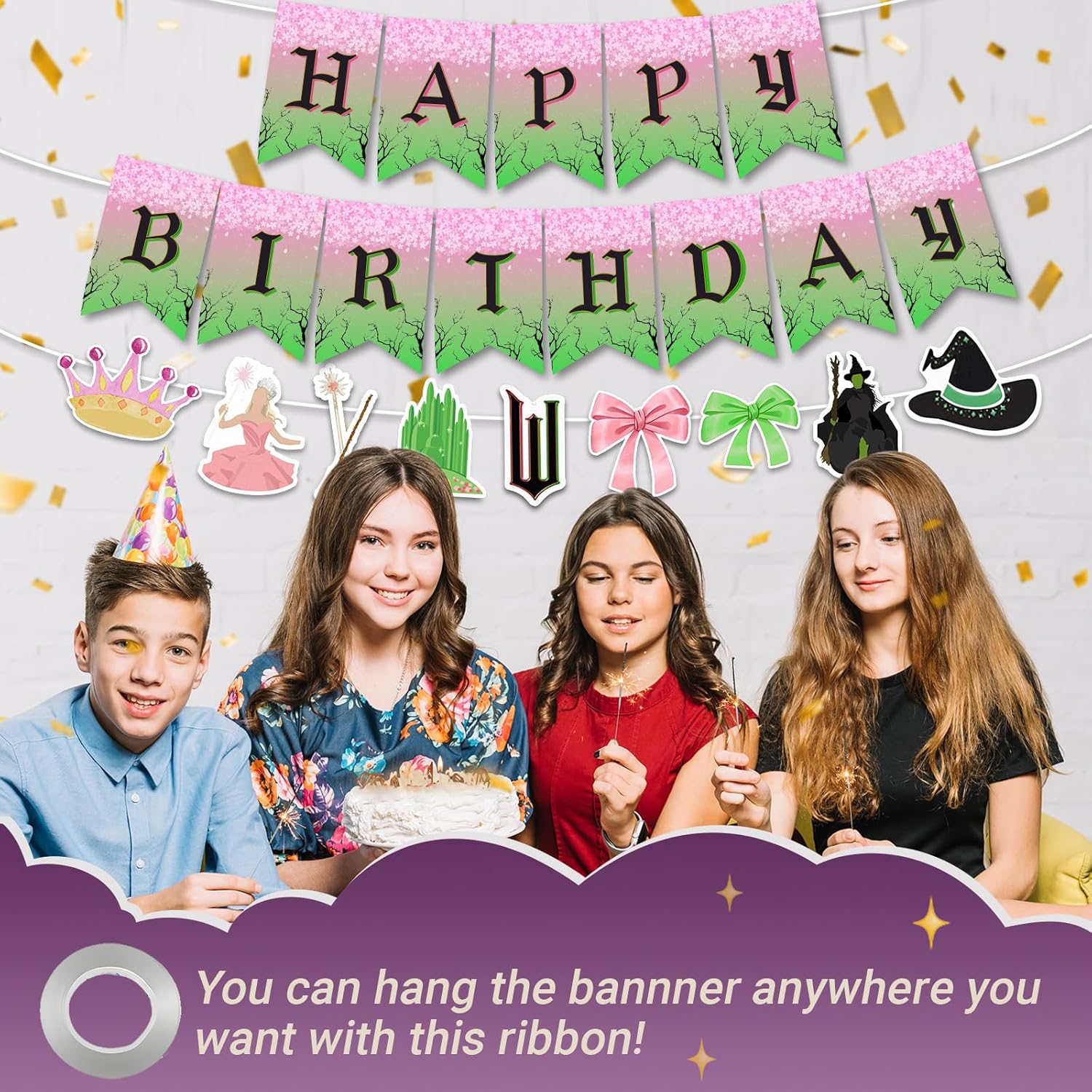 ♛Unique design: with pink and green as the theme tone, the collision of different colors adds vitality to the party, and the banner is also designed with important elements such as crown and witch hat.