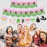 Witch Theme Party Decorations Banner,Funny Happy Birthday Party Banner,Pink and Green Birthday Party Supplies Decorations