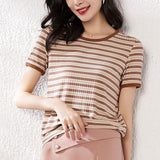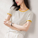 Yeknu Women Fashion Black And White Striped Blouse Shirt Casual Long Sleeve O-neck Soft Korean Shirt Ladies Women T-Shirt Spring