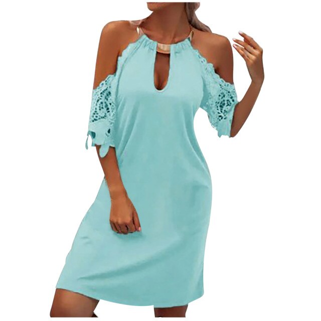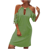 Yeknu Women Lace Summer Dresses Female Sexy V-neck Metal Halter Ring Plus Size Black Dress Ladies Oversize Solid Midi Dress Vestidos