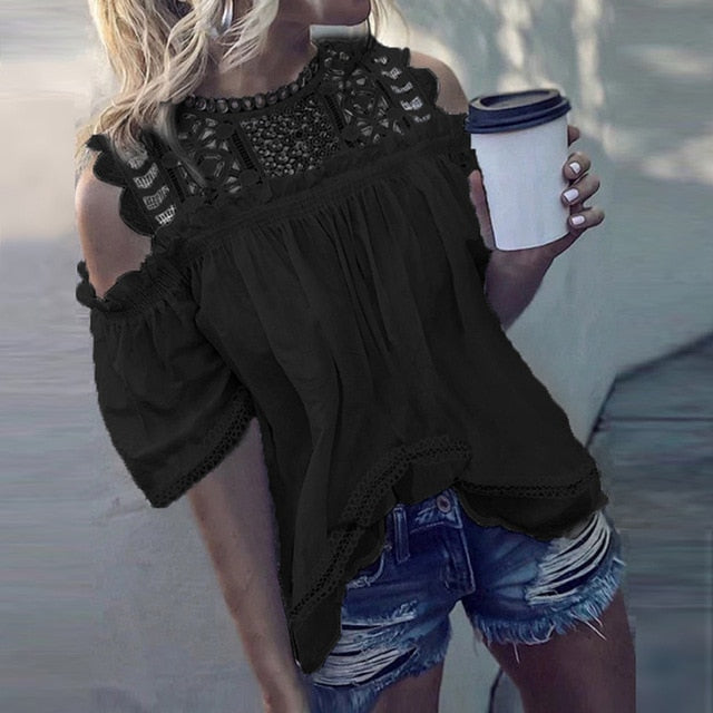 Yeknu Women Sexy Sleeveless Hollow Out Blouse Summer Loose Lace Patchwork Cotton Blouse Shirt Casual O-Neck Solid White Blusa Tops 5XL