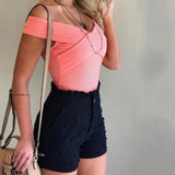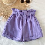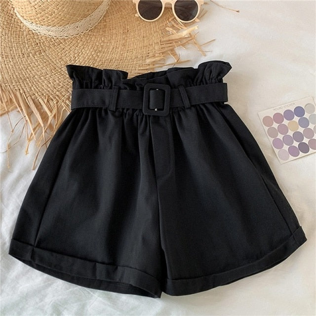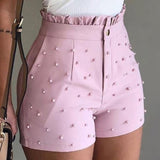 Yeknu Women Summer High Waist Shorts Ladies Beading Ruffle Casual Shorts Pantalones Cortos De Mujer