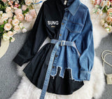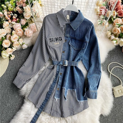 Yeknu Women's Blouse Autumn Long Sleeve Shirt Tops Jeans Patchwork Plaid Blouses Elegantes Blusas para mujer Slim Shirt Dress