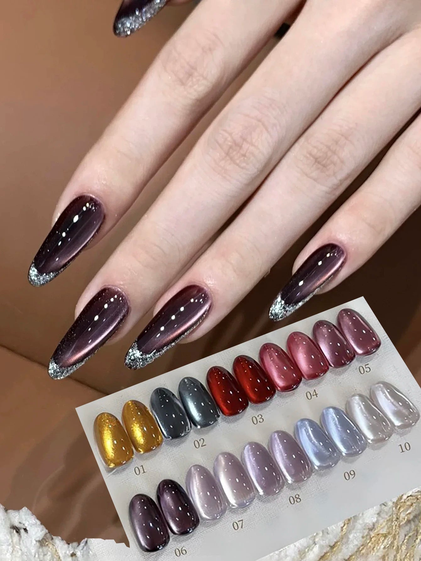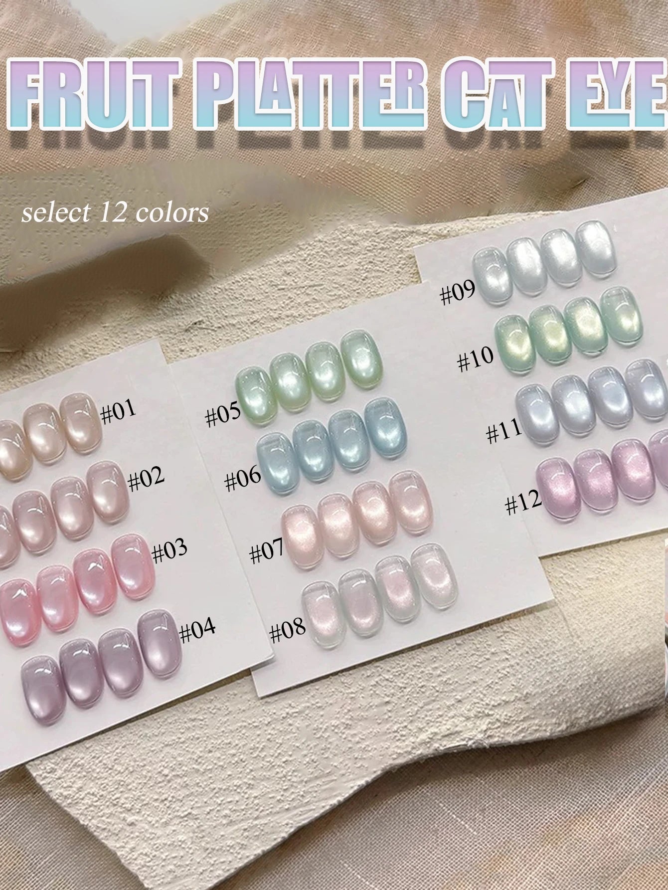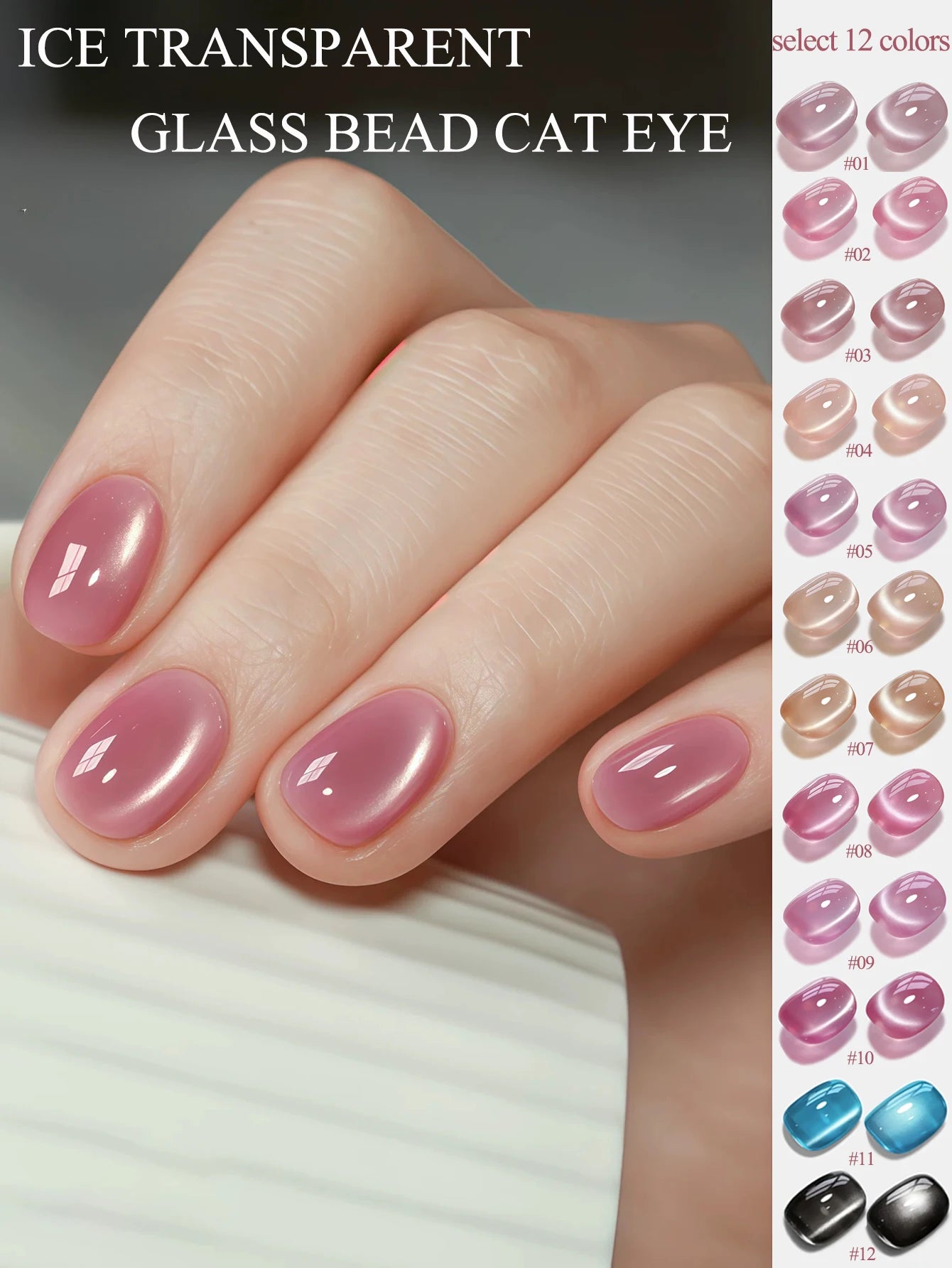 Yeknu 1-12pcs WS Spring Summer Hot Selling Blue Pink Purple Green Glass Bead Cat Eye Gel Nail Polish 2025 Nail Art Nail Supplies
