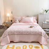 Yeknu 1/3Pc Korean Princess Ruffles Flowers Embroidery Summer Quilt Bedspread on the bed Quilt Air-conditioning Blanket Bedding Set