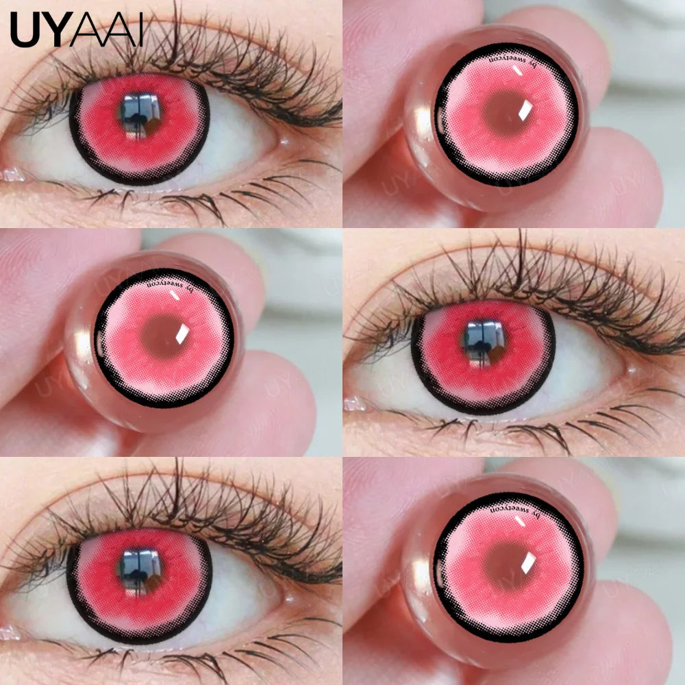 Yeknu 1 Pair Anime Pink Lenses for Eyes Cosplay Lenses for Halloween Nezuko Colorcon y2k Eye Contacts