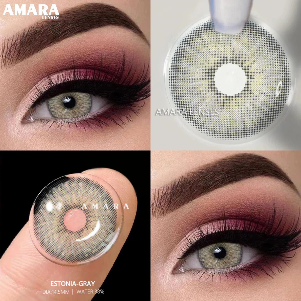 Yeknu 1 Pair Colored Contact Lenses Natural Look Colorful Eyes Lenses Yearly Cosmetic Makeup Eye Green Contacts Lens Gray Lense