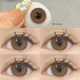 Yeknu 1 Pair Contact Lenses for Eyes Color Pupils Natural Brown Lenses Big Beautiful Pupil with Myopia Degree Yearly
