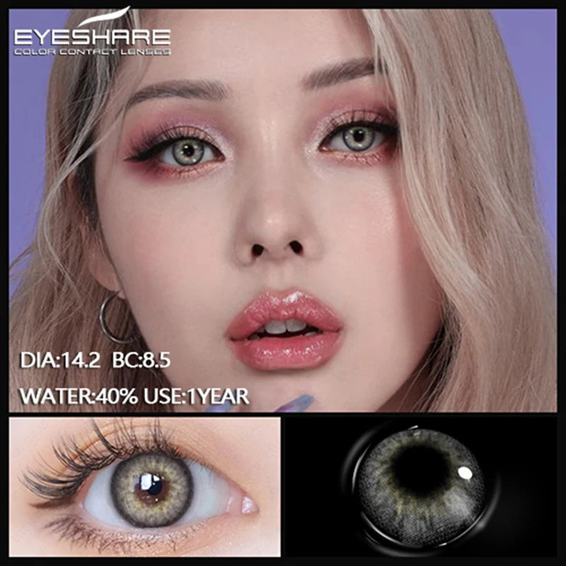 Yeknu 1 Pair Natural Color Contact Lenses for Eyes Beauty Pupils Gray Lenses Eye SIAM 14.0mm Brown Contact Lenses Blue Lense