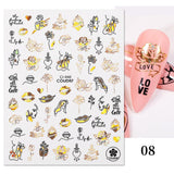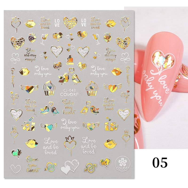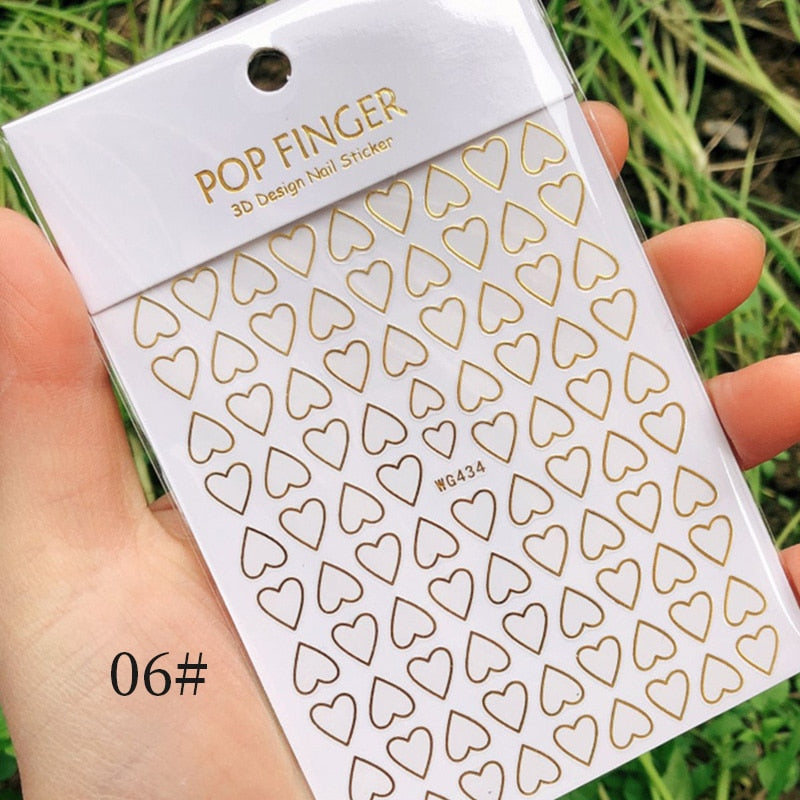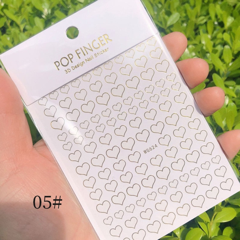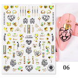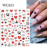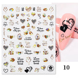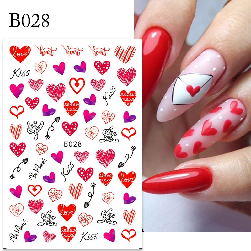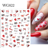 Yeknu 1 PC 3D Nail Sticker Valentine's Day Heart Love Geometric Lines English Letter Nails Decals Sticker Nail Art DIY Decoration