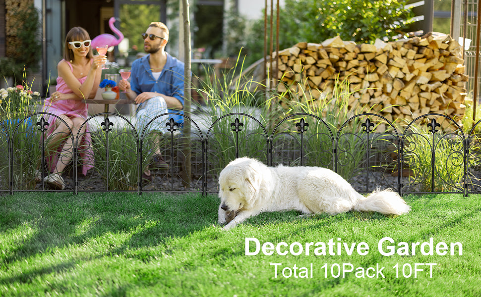 Yeknu 10-Pack Decorative Garden Fence, 24in(H) x 10ft(L) Rustproof Metal Animal Barrier for Yard, Dog & Rabbit Edging Border, Arched D